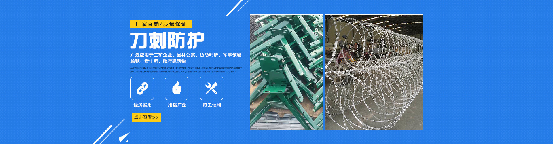 刀片刺繩?是一種新型防護網(wǎng)產(chǎn)品,具有生產(chǎn)工藝復(fù)雜、防護效果好、施工方便等優(yōu)點。如果你想知道,請看以下內(nèi)容。
